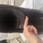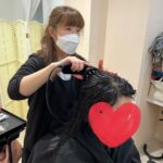 低アルカリカラーでリタッチして明るくしてから和漢パウダーを地肌から毛先まで塗布。生薬エキスがアルカリを中和して髪も地肌もダメージほぼなし!黒髪の明るさも変えられます。